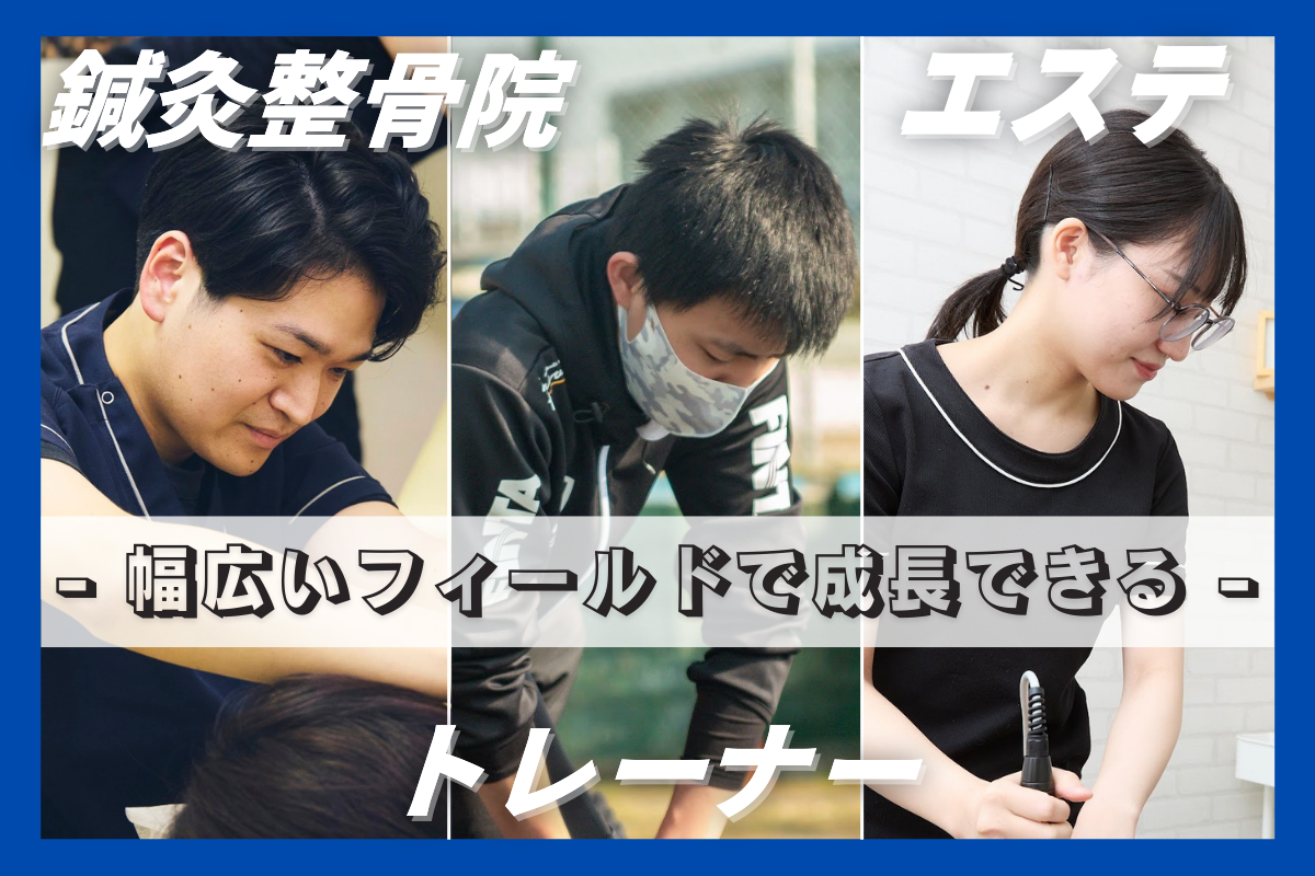 鍼灸整骨院、トレーナ事業部、美容事業部は完全就業時間内で仕事として携わってもらいます。また、トレーナー、美容に関しては鍼灸整骨院事業部と兼任していただくので両面から成長することができます。